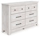 Looking to create a bedroom that feels airy and beautifully put together? This casually comfy dresser is your perfect solution. Its clean lines, whitewash finish and replicated pine grain exude a charming cottage-inspired feel that brightens your restful retreat. Six spacious drawers with simple dark bronze-tone knobs stow away clothes and more. Now there’s a fresh take on country living we can get behind.