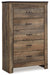 | Details | Made of engineered wood (MDF/particleboard) and decorative laminate, Warm rustic plank finish over replicated oak grain with authentic touch, Antiqued bronze-tone hardware, 5 smooth-operating drawers, Nailhead accents, Safety is a top priority, clothing storage units are designed to meet the most current standard for stability, ASTM F 2057 (ASTM International), Drawers extend out to accommodate maximum access to drawer interior while maintaining safety, Assembly required | |
