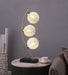 Graceful silhouetting pairs with a trio of elegant wire frame orb shades in a modern table lamp. Designed to make an impact on a console or side table, it features a fresh, modern look complete with a vertical arc frame in a chrome finish. The arc hosts three orb shades made from metal mesh, creating a striking effect of light and shadow. The light features three lights, each with an energy efficient 4-watt bulb that delivers bright illumination at a fraction of the cost. Finally, the lamp rests on a black finish rectangular base and offers a touch switch for truly seamless operation.
