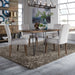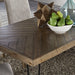 Reinvent your style with the Horizons rectangular table set. Crafted of rubberwood solids with pine veneers, this set features a rustic finish with saw mark distressing.