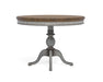Capture the relaxed look of an inviting cottage with the Plymouth round dining table. Taller than your standard dining table, this piece lends a more casual feel to spaces where you gather to share meals or interact. Featuring a distinctive carved pedestal base, this timeless design easily fits in smaller dining areas or game rooms and comfortably seats four. A weathered finish is enhanced by the medium brown table top, evoking a vintage charm that adds warmth and character.