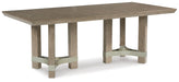You want your dining room to reflect your refined sensibilities while remaining forward-thinking in design. The simple silhouette of this dining table opens the door to a dining room with the curated look and subtle flair you desire. The piece's elegant waxy gray finish gets an added touch of luxury with a double-pedestal base and beveled-edge top, showing remarkable attention to detail. Whether you're hosting family meals or holiday entertaining, this table is a place to gather around in streamlined style.