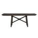 Gather the family around the Double Bridge optional gathering table set, consisting of the trestle table and four upholstered counter chairs. Crafted of rubberwood solids and acacia veneers, this kit features a dark chestnut finish with wire brushing. The table offers two 12-inch leaves, one for each end of the table, to accommodate guests or a larger family, and an easy glide track system for added convenience. The chairs feature grey linen upholstery and nylon chair glides to protect your flooring. The Double Bridge Dining defines the rustic side of casual. The sleek design is optimal for any space.