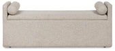 | Details | Made with solid wood frame, Polyester upholstery, Storage under seat top, Loose bolster cushions included, Casters for easy mobility, Assembly required | |