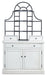 | Details | Includes baker's rack base and hutch, Made with hardwood solids, mango wood veneer, MDF substrate and metal , Antiqued white finish, Frame with black finish, Dark pewter-tone knobs , Metal hutch with 2 wood shelves, 2 single-door cabinets (each with one shelf), 3 drawers with felt lining , 6 small hooks for hanging mugs and small accessories, Assembly required | |