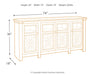 | Details | Made of veneers, wood and engineered wood, Two-tone finish (weathered oak top over antiqued white), 2 side cabinets with 2 adjustable shelves each, 1 center cabinet with 2 doors and 2 adjustable shelves, Cabinet doors with glass inlays, Black faceted hardware, Cutouts for wire management | |