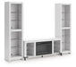 | Details | Includes TV stand with electric fireplace and 2 piers, Made with engineered wood (MDF/particleboard/plywood) and decorative laminate for the right balance of affordability and durability, Matte white finish with subtle replicated wood grain, Decorative laminate replicates natural or man-made material surfaces with consistent color, pattern and texture, Legs with black finish, TV stand with 4 backlit glass shelves, Pier with 4 backlit glass and single engineered wood shelves , Fireplace insert and backlit shelves feature color and brightness controlled LED lighting, 3 color settings for synchronized LED lights: blue, red and white, Remote control with LED display, Power cord included; UL Listed, Minor assembly required | |