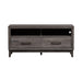 Contemporary and simplistic design are combined to create the Mercury TV console. Crafted with rubberwood solids and melamine, this piece accommodates most TVs and features a solid wood picture frame, antiqued pewter bar pulls hardware, 2 drawers, picture framed case anchored by tapered block style feet. The melamine is scratch resistant, sure to make this piece last in any home. The open compartment and wire management provisions effortlessly accommodate electronics or gaming equipment.