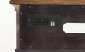- Two integrated electrical outlets and USB ports keep cords hidden and out of the way and devices charged