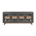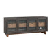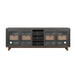 Add effortless style and architectural appeal to your living room with the Waterfall entertainment console. This striking piece features a timeless silhouette defined by clean lines and simple geometric shapes. Meticulously crafted from poplar and rubberwood solids, oak veneers, and a deep ebony finish, this piece is built to be everlasting. The spacious 76” inch top, four storage cabinets with drawers provide ample space for all your entertainment essentials. The graceful namesake waterfall edges give this entertainment console true elegance.