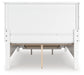| Details | Includes panel headboard, storage footboard, rails and roll slats , Made with hardwood solids and MDF substrate, Side rails feature laminated solid hardwood slat support rails (or LVL) with glued and screwed blocking for added strength , White painted finish, Round metal drawer knobs with satin nickel-tone finish, Tapered feet, 2 smooth-gliding drawers in footboard , Bed does not require additional foundation/box spring; accommodates most zero clearance adjustable bases with the addition of a bunkie board , Mattress available, sold separately, Assembly required | |