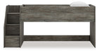| Details | Includes loft bed, left storage steps with loft ends and roll slats, Made with engineered wood (MDF/particleboard/plywood) and decorative laminate for the right balance of affordability and durability, Rustic warm gray finish over replicated oak grain with authentic touch, Decorative laminate replicates natural or man-made material surfaces with consistent color, pattern and texture, Bed does not require additional foundation/box spring, Mattress available, sold separately, Assembly required | |
