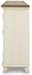 Whether your style is cottage chic, boho inspired or uniquely eclectic, this accent cabinet is sure to look right at home. Standout elements include raised panel door fronts that are a work of art. Wonderfully timeworn in antique white, this 4-door cabinet is topped with a warm brown finish for two-tone interest. Two adjustable shelves add to its practicality.