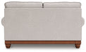 Fresh yet classic. That’s the beauty of this loveseat. Dressy and also soft to the touch, its organic neutral-toned upholstery is sure to bring a transitional farmhouse aesthetic to your living space. Accent pillows in windowpane plaid infuse a cozy and inviting farmhouse sensibility, while a full wraparound base and decorative turned legs complete the loveseat's timeless look. It's the perfect place to unwind with your bestie after a long day.