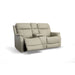 Powerful Support Keep everything you need for a relaxing night in close at hand with the Easton Loveseat with Power Headrests and Lumbar. Designed for your convenience, this ergonomic loveseat has a storage console with beverage holders and plenty of space to keep remotes and personal items. Personalize your experience with an easy-to-access power control on the side of either arm that allows both people sitting to independently adjust the recline and headrests. With a USB charging port built into the power controls, you won’t have to worry about keeping devices powered up. Additional enhancements include lower lumbar support, which you can adjust with the power controls, plush, high-divide back cushions, padded sloped track arms and thick, luxurious seat cushions. Our patented Flexsteel DualFlex Spring System™ offers a mix of firmness and flexibility as you sit and ensures that the loveseat will stay comfortable for years to come. Choose from several durable, cleanable fabric or premium leather options to create a look that blends with your home décor.