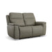 Transform your living space with the Sawyer power reclining loveseat with power headrests and lumbar, a perfect blend of comfort and style. This stunning design features high-quality, gray top grain leather upholstery with unique cross-stitching and a distinct arm silhouette, adding a sophisticated touch to any room. Customize your comfort with power recline, headrests and lumbar support at the touch of a button and experience Zero Gravity reclining, relieving pressure from your joints. Designed for durability and longevity, this loveseat includes Flexsteel’s patented Blue Steel Spring™, providing unmatched seat comfort and durability that you can count on.