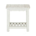 - Parchment Brown Top Offers Striking Contrast to Weathered White Finish