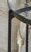 Details Made with metal, Black finish, Patterned metal rod legs, Thick clear cast glass top
