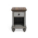 Bring cottage-inspired style to living spaces with the charming and useful Plymouth chairside table. A weathered graywash finish is contrasted by a medium brown planked top, while detailed molding and turned bun feet add to the cozy vintage character. A single drawer on ball-bearing glides and open compartment provide convenient storage for anything needed to be kept within reach. The table’s small-scale design makes it a perfect accent piece for any size room.