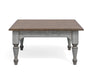 Relax with the family or entertain guests in cottage-inspired style with the Plymouth square coffee table. An ample planked tabletop surface offers the ideal place for drinks or magazines, while a weathered graywash finish and turned legs create a charming vintage look.