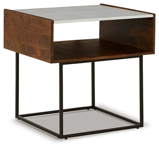 Signature Design by Ashley®A posh and polished look for a contemporary aesthetic, this striking end table features solid mango wood, a natural marble tabletop and a slim meta...