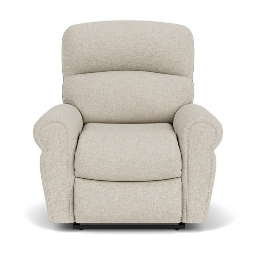 FlexsteelRefined look with large-scale appeal Envelope yourself in the generous and weightless comfort of the Strait Power Recliner with Power Headrest. Thi...
