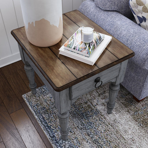 Liberty FurnitureEnhance your space with the Modern Farmhouse drawer chair side table. Crafted of poplar solids with knotty white oak veneers, this piece features h...