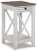 | Details | Made of veneer, solid and engineered wood in distressed white and gray finish, Metal door pull in black, 1 drawer and 1 shelf, 2 USB charging ports, Assembly required | |