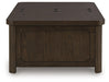 | Details | Made with hardwood solids, oak veneer and MDF substrate, Dark brown wood-tone finish with rich dark grain contrast, 2-sided hinged top opens to reveal storage, Assembly required | |