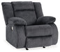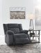 If highly contemporary looks and a heavenly feel sit well with you, rest your eyes on this power rocker recliner. Padded velvet upholstery has a plush high pile that's so soft to the touch. Jumbo contrast stitching adds fashion-forward flair, while radius cut arm frame incorporates cool, curvaceous interest. At your fingertips: one-touch power control with a zero-draw USB plug-in that’s not only convenient but also energy efficient. When it comes to high style at a down-to-earth price, this power recliner really brings it home.