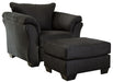 Talk about fine lines and great curves—that’s the beauty of this chair and ottoman. Made to suit your appreciation for clean, contemporary style, this fashion statement is complete with a striking flared frame, comfy pillow top armrests, tapered feet on the ottoman and an ultra-soft upholstery that holds up to everyday living.