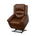 The generous padding and heavy-thread stitching detail of the Oscar power lift recliner with power headrest instantly grabs your attention and welcomes you to take a seat. Nailhead trim traces the edges of the arm fronts to highlight the welcoming silhouette, while an extended footrest provides additional leg rest space for taller users. Customize your sit with power recline and headrest that can be adjusted at the touch of a button. Power lift provides easy and safe assistance when getting in and out of the chair. Outfitted in a rich, grizzly brown leather, this recliner is sure to bring warmth and comfort to any living room.