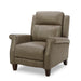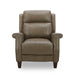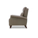 Push back and relax with the Raleigh high leg recliner. Designed for style and built for comfort. Raleigh's transitional design features a stylized flared arm enhanced with decorative welt trim, classic box-banded back and seat cushions for superior comfort, and tapered wood legs in a mid-tone brown for a stationary aesthetic.