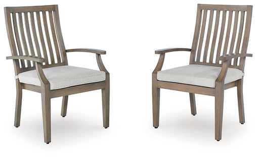Signature Design by Ashley®Elevate the appeal of easy-breezy living with this outdoor dining arm chair. Made to look like wood yet suitably durable enough to weather the elem...