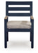 Easy-breezy beauty, made to withstand the elements. With its soothing shade of blue and contrasting wood-look arms, this outdoor arm chair makes a serene statement on your deck or patio. A cushioned seat keeps you comfy as you lounge. Crafted with durable materials for added longevity, it's a smartly stylish addition to your outdoor oasis.