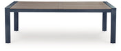 Easy-breezy beauty, made to withstand the elements. This outdoor dining table makes a serene statement with its soothing shade of blue and contrasting wood-look top. Crafted with durable materials for added longevity, it's a smartly stylish addition to your outdoor oasis.