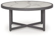 A refined marriage of style and durability, this outdoor coffee table adds contemporary flair to your porch or patio. Shades of gray and a luxe marble look on top lend a versatile, neutral appeal. And this table is built to last, thanks to its rust-resistant aluminum construction.