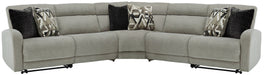 Delightfully modern. Exceptionally comfortable. When it comes to modular furniture with easy-elegant appeal, it’s hard to beat this power reclining sectional. Wrapped in a decadently plush stone-tone fabric for neutral versatility, this chic sectional is dressed to impress with a clean-lined divided back, curved track arms and a low-profile back for a relaxed, contemporary aesthetic.