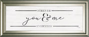 Embrace the timeless message of love with this beautifully framed wall art that reads "Forever you & me everyday." Set against a soft whitewashed wood background, the elegant black typography stands out with a classic charm, perfectly complemented by a refined silver frame. This piece brings warmth and inspiration to any living room, bedroom, or entryway, making it a heartfelt addition to your home decor. Crafted with premium materials and protected by real glass, it’s ready to hang and designed to last, symbolizing enduring affection in your cherished spaces.