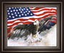 Soaring Majesty captures the bold spirit of a bald eagle in mid-flight, wings spread wide against the vibrant backdrop of a waving American flag. This traditional graphic art piece is framed in a rich, dark wood frame with premium real glass that highlights every brushstroke and vivid detail. Perfect for adding a touch of patriotism and strength to your living room or office, this artwork is ready to hang and crafted with care to inspire pride and admiration. Its timeless design and exceptional quality make it a meaningful tribute to freedom and resilience.