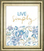 Invite a sense of calm and simplicity into your space with this elegant "Live Simply" framed wall art. Featuring delicate botanical illustrations in soothing blues, greens, and golds, this piece beautifully captures the quiet beauty of nature. The sophisticated gold frame adds warmth and depth, making it a perfect addition to living rooms, bedrooms, or offices. Crafted with premium materials and real glass, this artwork is ready to hang and inspires mindfulness and tranquility in everyday life.