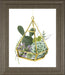 This captivating piece showcases a delicate hanging terrarium filled with a vibrant assortment of succulents and cacti, rendered in a soft botanical drawing style. The muted greens and subtle purples of the plants contrast beautifully with the warm gold frame, creating a harmonious blend of nature and elegance. Perfect for adding a touch of tranquility and fresh greenery to any living room, bedroom, or office, this artwork invites a serene indoor garden feel. Crafted with care and protected by real glass, it arrives ready to hang, offering a timeless and sophisticated accent to your home décor.