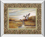Step into a tranquil marshland with this captivating artwork featuring two mallard ducks in graceful flight over a serene waterway. The scene captures the soft glow of dawn with golden reeds and muted skies creating a peaceful backdrop. Encased in a sleek mirrored frame with double matting, this piece adds a modern, reflective elegance to any living room, office, or study. Crafted with premium materials and protected by real glass, it preserves vivid colors and fine details, inviting you to connect with nature's calm beauty every day.