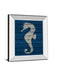 Invite the serene beauty of the ocean into your home with this Antique Seahorse wall art. The intricately detailed seahorse is set against a deep blue wood plank background, evoking the calm and mystery of the sea. Encased in a sleek mirrored frame, the piece reflects light and adds a modern touch while protecting the vibrant graphic art with real glass. Perfect for living rooms, bedrooms, or beach houses, this artwork blends contemporary style with timeless coastal charm, ready to hang and crafted with care in the USA.