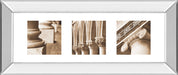 Step into a world where classical architecture meets modern elegance with this captivating triptych. The three sepia-toned photographic panels showcase intricate columns and arches, evoking a timeless sense of grandeur and craftsmanship. Encased in a sleek mirrored frame, the artwork reflects light beautifully, adding depth and sophistication to any living room, office, or hallway. Each panel is protected by premium real glass, preserving the fine details and textures of the stonework with crystal clarity. Expertly crafted and ready to hang, this framed wall art blends historic beauty with contemporary style to elevate your space effortlessly.