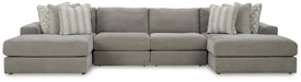 Details Includes 4 modular pieces: left-arm facing corner chaise, right-arm facing corner chaise and 2 armless chairs, "Left-arm" and "right-arm" describe the position of the arm when you face the piece, Corner-blocked frame, Reversible seat and back cushions, High-resiliency foam cushions wrapped in poly fiber, Accent pillows included, Pillows with feather-fiber blend, Polyester chenille/polyester upholstery, Non-skid legs, Platform foundation system resists sagging 3x better than spring system after 20,000 testing cycles by providing more even support, Smooth platform foundation maintains tight, wrinkle-free look without dips or sags that can occur over time with sinuous spring foundations, Modular pieces can float anywhere; sides are finished (with no connectors)