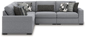 | Details | Includes 5 modular pieces: left-arm facing corner chair, 2 armless chairs, wedge and right-arm facing corner chair, "Left-arm" and "right-arm" describe the position of the arm when you face the piece, Modular pieces can float anywhere; sides are finished (with no connectors), Corner-blocked frame, Reversible seat and back cushions; high-resiliency foam cushions wrapped in poly fiber, Accent pillows included; pillows with soft polyfill, Polyester upholstery, Next-Gen Nuvella is a performance fabric that is soft, easy to clean, stain-resistant and durable, Easy-to-remove zippered covers for machine washing, Clean fabric with mild soap and water, let air dry; for stubborn stains, use a solution of 4 oz. bleach to 28 oz. water, Low-profile accent legs with faux wood finish, Platform foundation system resists sagging 3x better than spring system after 20,000 testing cycles by providing more even support, Smooth platform foundation maintains tight, wrinkle-free look without dips or sags that can occur over time with sinuous spring foundations | |