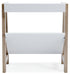 | Details | Made with wood and engineered wood, Light tan finish on frame, Top and shelf with white finish, Gallery rail top, 1 fixed shelf, Assembly required | |
