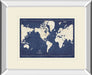Blueprint World Map V2 By Sue Schlabach Mirrored Frame - Blue