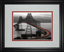 Experience the captivating allure of modern architecture with this striking framed wall art that brings dynamic energy to any space. The image showcases a dramatic bridge with sweeping curves, highlighted by glowing red tail lights that trace its path against a moody grayscale backdrop. Framed in a deep midnight aura finish with double mats in cream and rich red, this piece adds depth and sophistication to your living room or office. Crafted with premium real glass and ready to hang, it effortlessly combines durability with contemporary style, transforming your walls into a refined gallery.